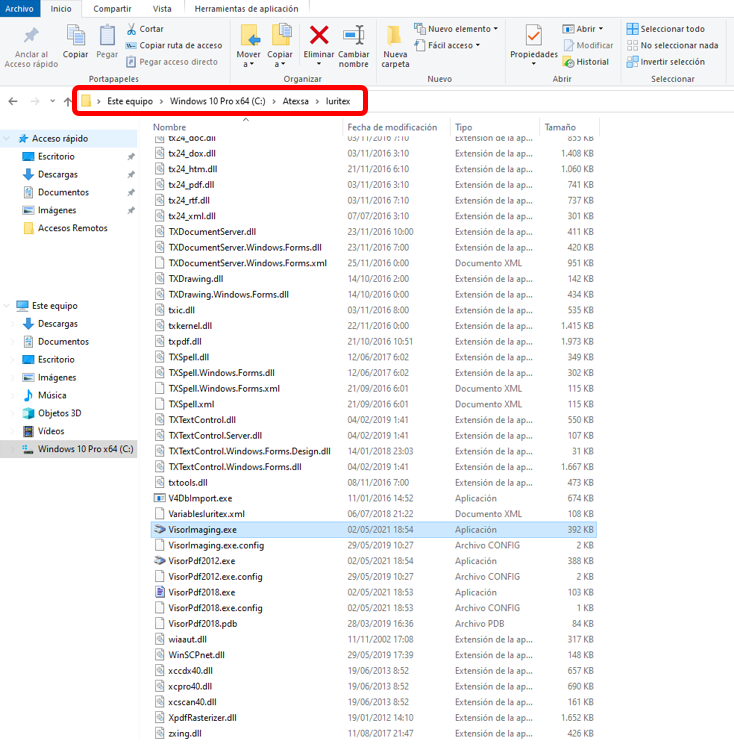 buscaremos la siguiente ruta: C:\Atexsa\IuritexAbogado\VisorImaging.exe