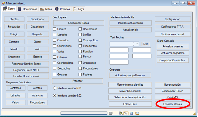 Desde el menú principal, accederemos a la pestaña «Ayuda» y haremos clic en el icono «Mantenimiento»