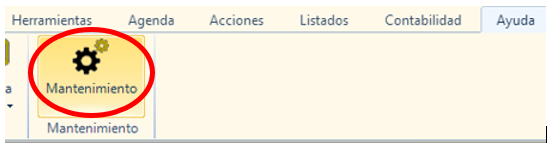 Desde el menú principal, accederemos a la pestaña «Ayuda» y haremos clic en el icono «Mantenimiento»