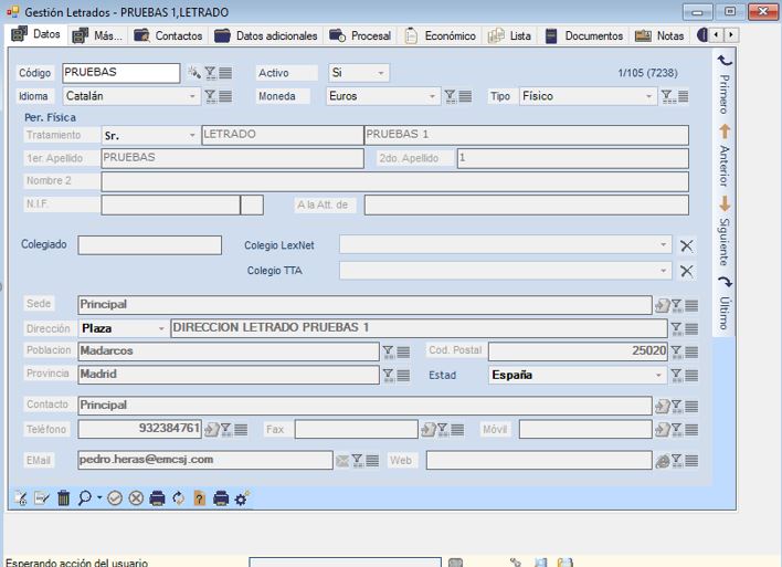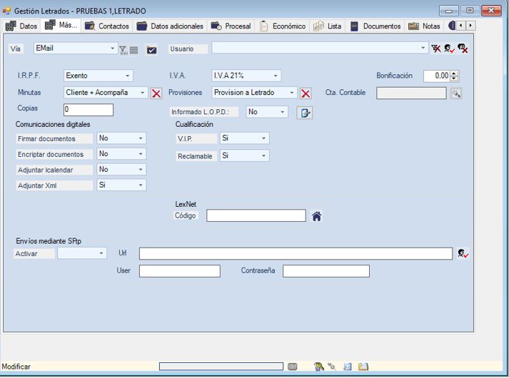 Accederemos al formulario del letrado en el cual queramos modificar el contenido del asunto del mail