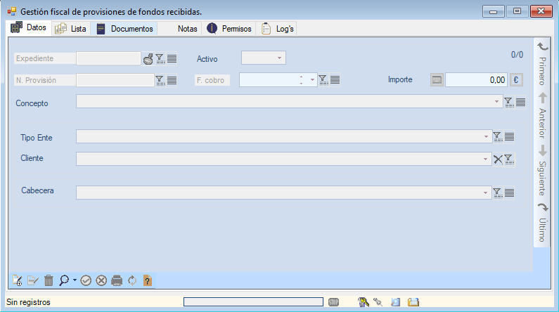 En el campo «Expediente» indicaremos el número o referencia del expediente la que queramos asignar la gestión de provisión de fondos recibida